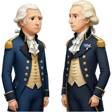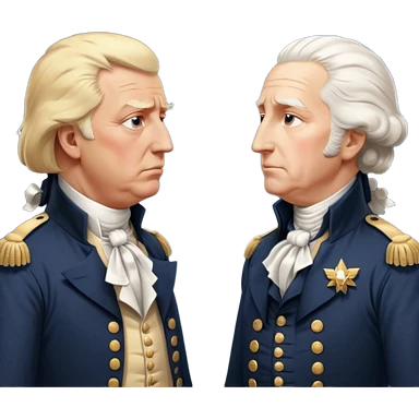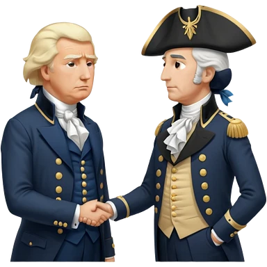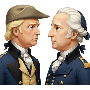 “Donald Trump and George Washington facing each other. Trump in a modern suit, visibly shocked. George Washington in colonial uniform, calm and silent. Realistic style, cinematic lighting.” emoji
