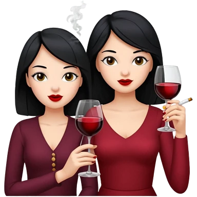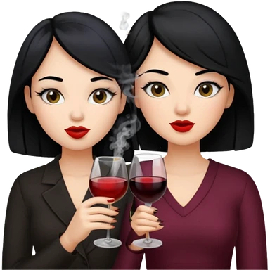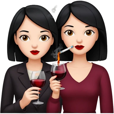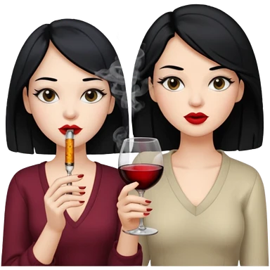 2 girls 1 smoking and 1 drinking wine black hair emoji
