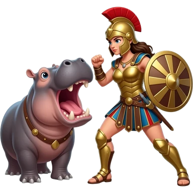 Gladiator woman fighting a hippo in the colosseum emoji