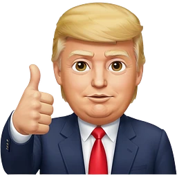 Donald trump holding a silver squirt gun in one hand and aiming it at the side of his head and giving a thumbs up with his other hand emoji | AI Emoji Generator