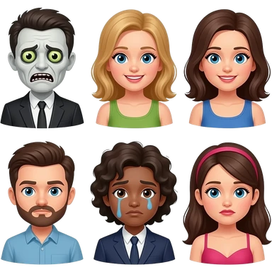 Green Zombie brunette long hair girl with mouth open horror emoji