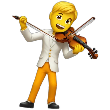 yellow-boy-with-white-jacket-and-orange-trousers-holding-in-his-hands-violin-behind-is-a-orange-sea emoji