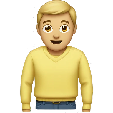 Blonde man with blue eyes wearing brown trousers and cream shirt jumping over a wall emoji