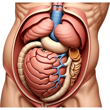 A highly detailed 3D accurate and anatomical model of the belly of a human. Medical illustration style, realistic lighting, neutral background, hyper-detailed, scientific accuracy, 8K resolution. ANATOMICAL ACCURACY and ORGAN PLACEMENT are a PRIORITY emoji