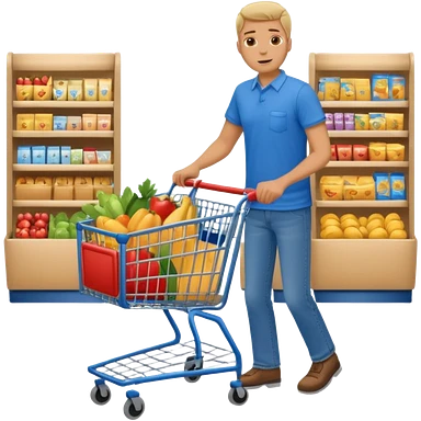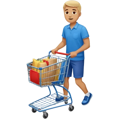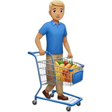full body of a man pushing a shopping cart inside a supermarket emoji