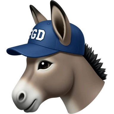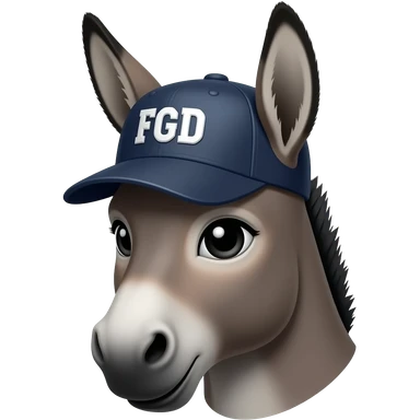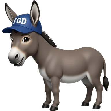 Donkey profile wearing a baseball cap with the letters FGD, front view emoji