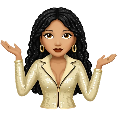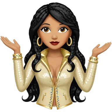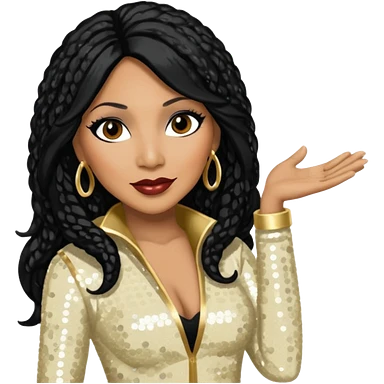 Donna Summer with long jet black hair, white sequin outfit emoji | AI Emoji Generator