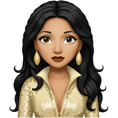 Diana Ross with long jet black hair, white sequin outfit emoji