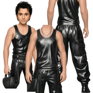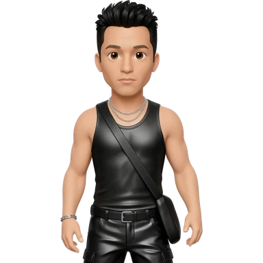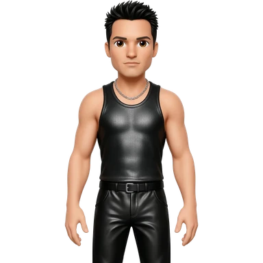 Danny Wood from NKOTB with brown eyes, black hair, black metallic tank top, black metallic baggy pants, silver necklace emoji