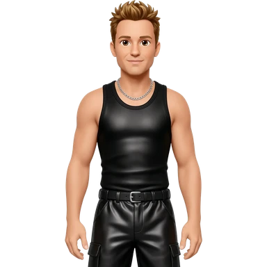 Donnie Wahlberg from NKOTB with brown eyes, golden brown hair, black metallic tank top, black metallic baggy pants, silver necklace emoji