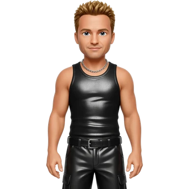 Donnie Wahlberg from NKOTB with golden brown hair, black metallic tank top, black metallic baggy pants, silver necklace emoji