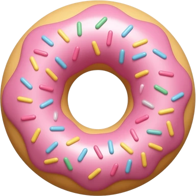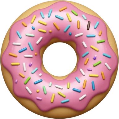 round donut with shiny pink glaze and rainbow sprinkles, slightly angled side view emoji