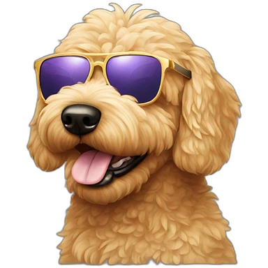 A golden doodle dog with sunglasses on it's face emoji