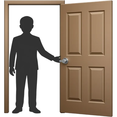 door open with a man silhouette leaving, emotional scene, minimal flat illustration, soft warm tones, simple shapes, consistent style, no background emoji