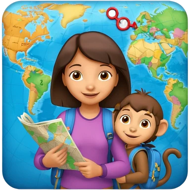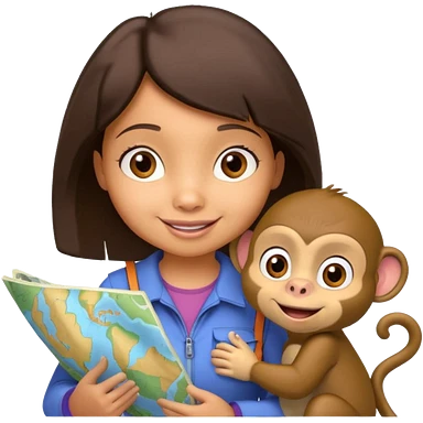 light skin dora the explorer with monkey and map emoji