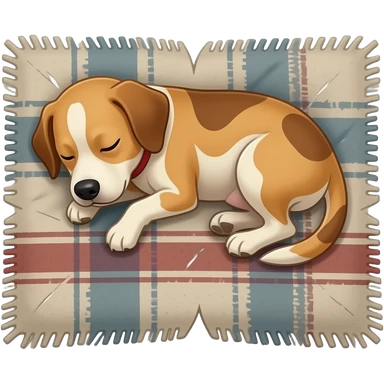 Cachorro sujo dormindo em cobertor surrado esfarrapado emoji