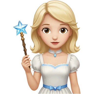 dorothy queen blonde hair, white dress with magic wand emoji
