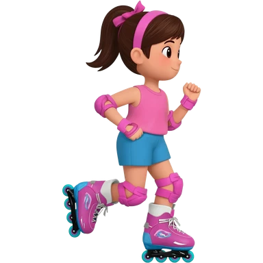 Una patinadora de 12 años y es morena de pelo y lleva un mallott granate con brillos y esta patinando con patines de ruedas en linea y su piel es clara y el pelo es largo negro ondulado emoji