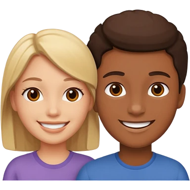 Dos amigas una rubia, rizada, blanca y con ropa rosada y la otra morena, lisa, pelinegra y con un top azul marino emoji