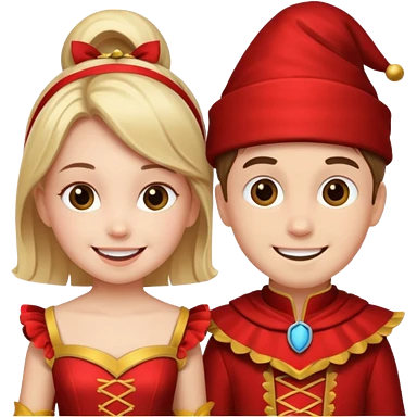 crie uma imagem com duas crianças fantasiadas brincando, um menino e uma menina, descontraidos emoji
