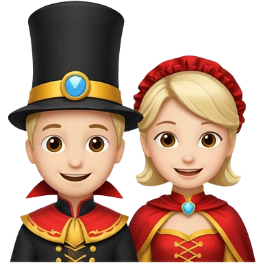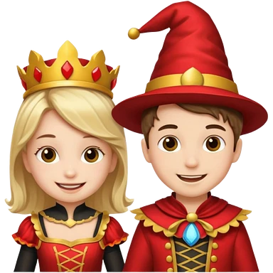 crie uma imagem com duas crianças fantasiadas brincando, um menino e uma menina emoji