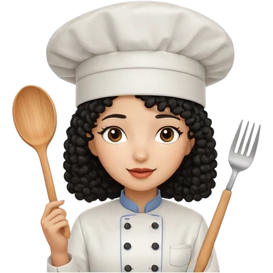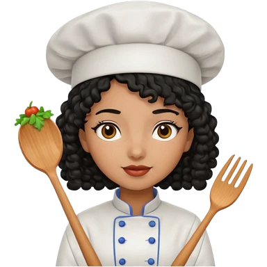 Una chica chef de cabello negro con rulos emoji