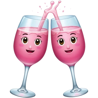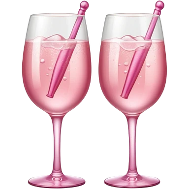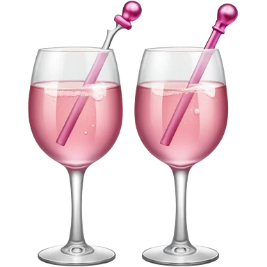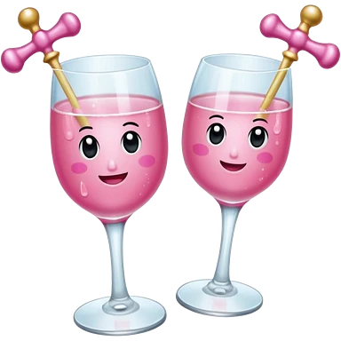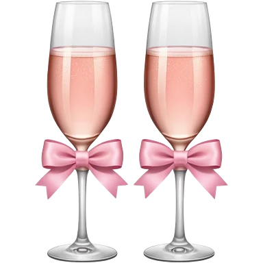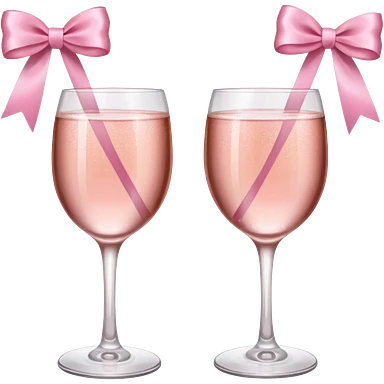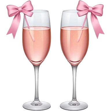 Dos Champagne rosa cruzadas de la parte donde se sostiene con la mano, formando una x, con un listón de moño color rosa claro sin cartas, que sea aesthetic emoji