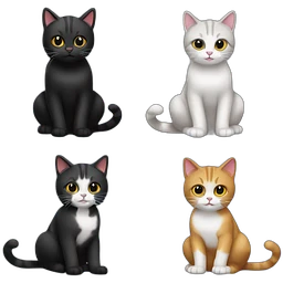 Dos gatos jugando, uno es atigrado y una gata negra con manchas blancas jugando emoji | AI Emoji Generator
