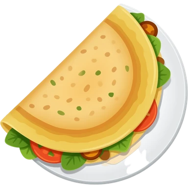 three plates, one plate with a crispy dosa, one plate with pizza and one plate with ravioli emoji