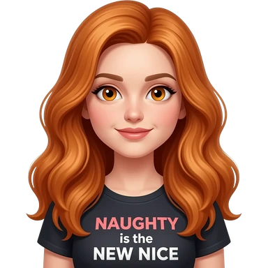 sexy girl with overlong ginger hair and ginger eyes a top with NAUGHTY is the NEW NICE written on it emoji