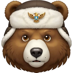 Friendly bear face wearing traditional Russian ushanka hat with double-headed eagle emblem, iOS emoji style emoji