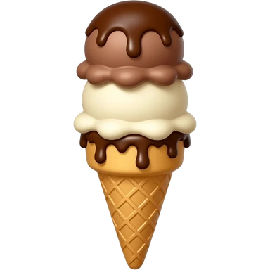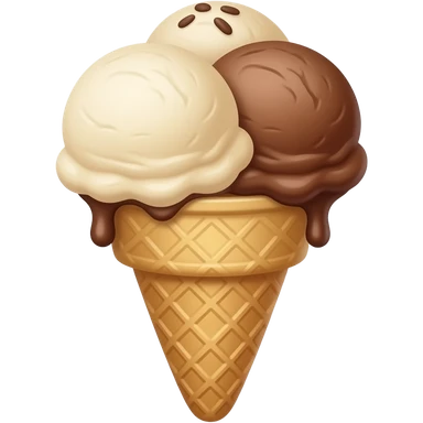 Double dip ice cream cone. One cone two scoops. Dipped with chocolate emoji