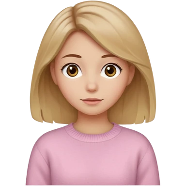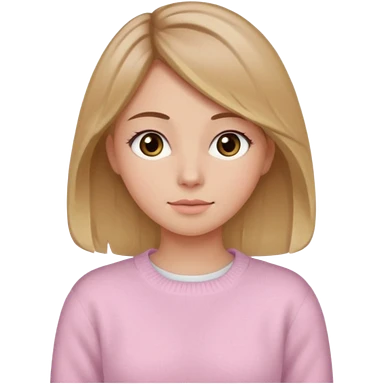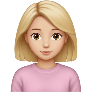 Crea una chica güerita con pelo café claro y raíces güeras, ojos rasgados cafés oscuros, suéter o camisa rosa claro emoji