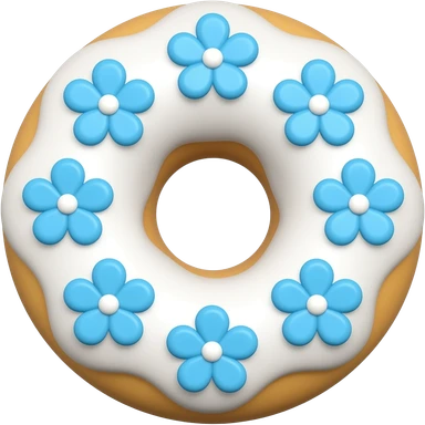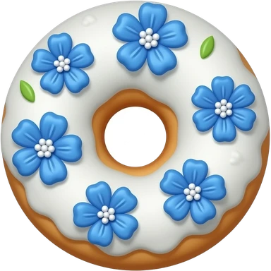 doughnut with white frosting decorated with blue flowers with long petals emoji | AI Emoji Generator