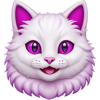 White cat smiling with teeth showing, pink inner ears, magenta purple eyes emoji