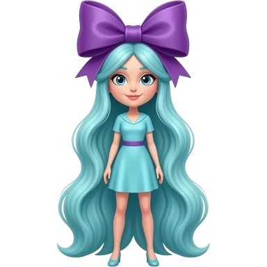 Dr Seuss style cyan big purple bow very tall full body emoji
