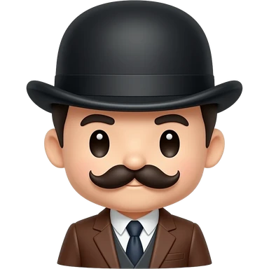 Doctor Watson (from Sherlock Holmes stiry) icon, bowler hat, mustache, brown suit, emoji