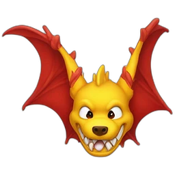 Un dragon mi loup rouge et jaune moutardes, avec des corne jaune moutard. Il qui crache du feux emoji