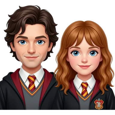 1 Hermione granger with red hair green eyes and her hupplepuf wizard clothese emoji