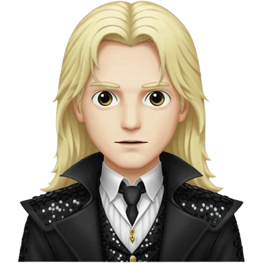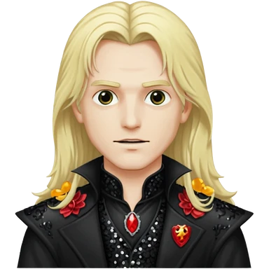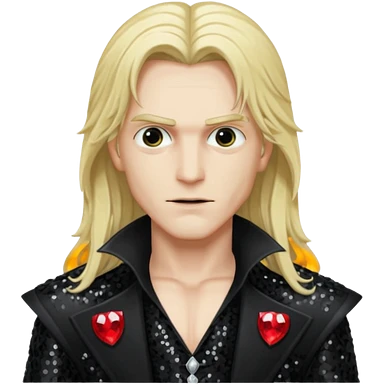 Alucard ,Son of Dracula with long blonde hair, black sequin outfit emoji