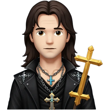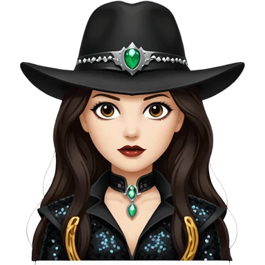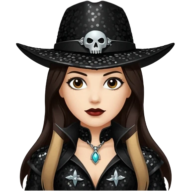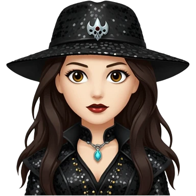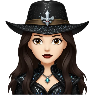 Van Helsing from Dracula with long dark brown hair, black sequin outfit emoji