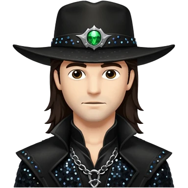 Van Helsing (Male) from Dracula with long dark brown hair, black sequin outfit emoji