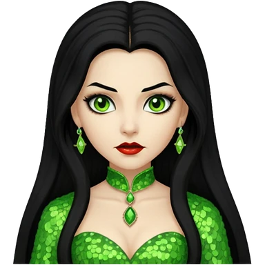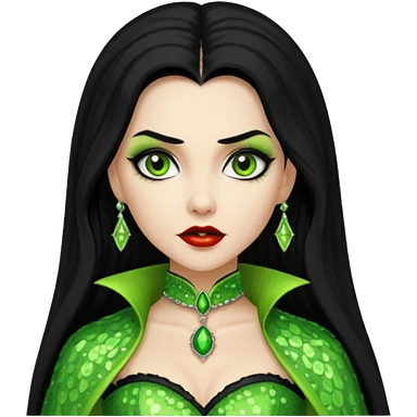 Verona, Bride of Dracula from Van Helsing with long black hair, lime green sequin outfit emoji