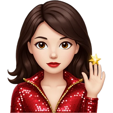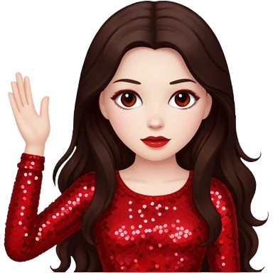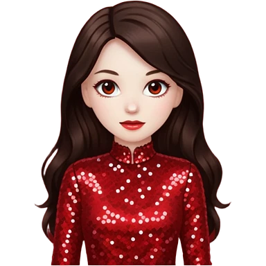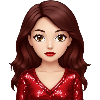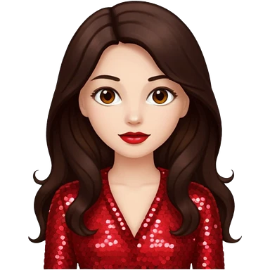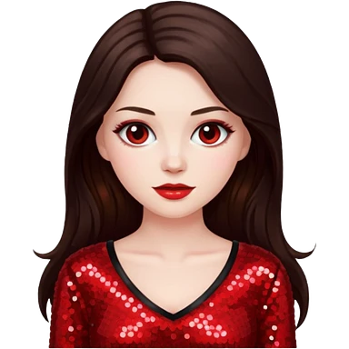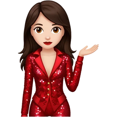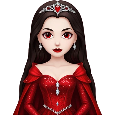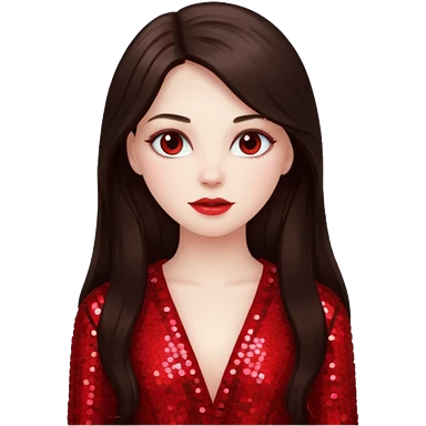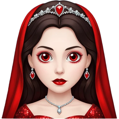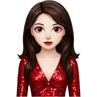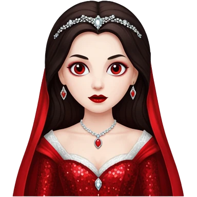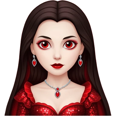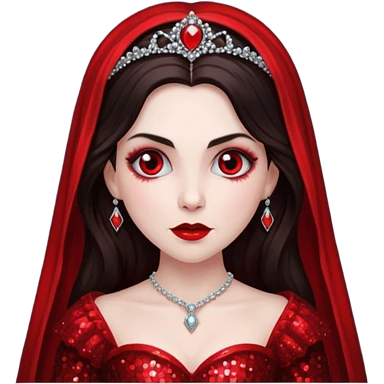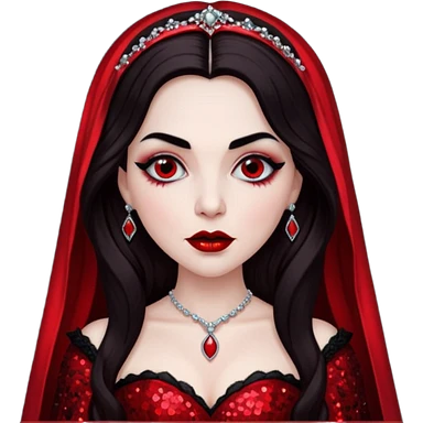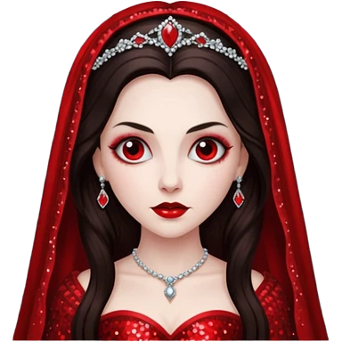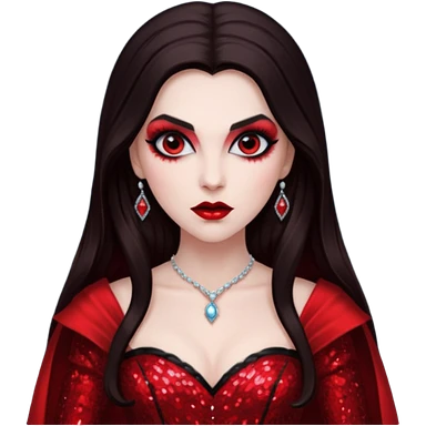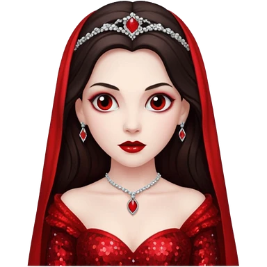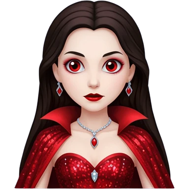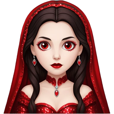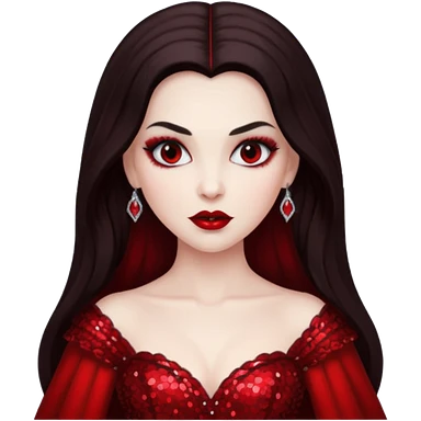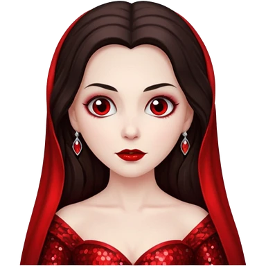 Bride of Dracula with long dark brown hair, red sequin outfit emoji