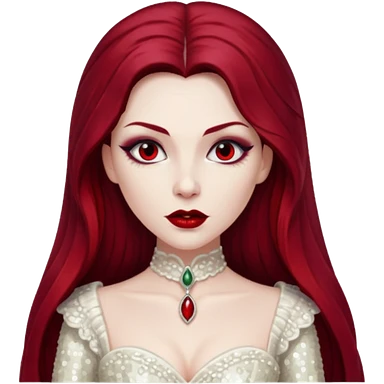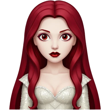 Bride of Dracula with long dark red hair, ivory sequin outfit emoji