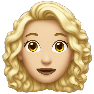A drag queen with huge hair and a glittery dress, putting on blusher from a compact emoji