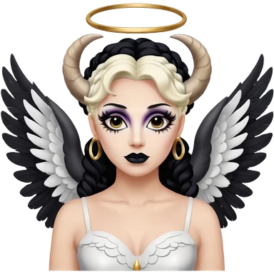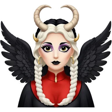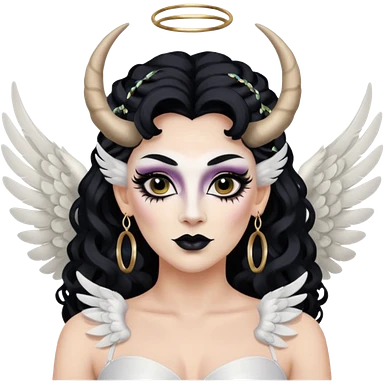 Drag queen with angel wings and ram horns emoji | AI Emoji Generator
