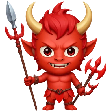 a Red devil, short horn Chibi red demon hold a trident emoji