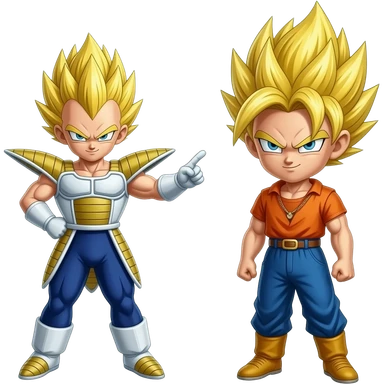 Dragon ball vegeta with his two fingers and arms facing right to fusion with trunks emoji