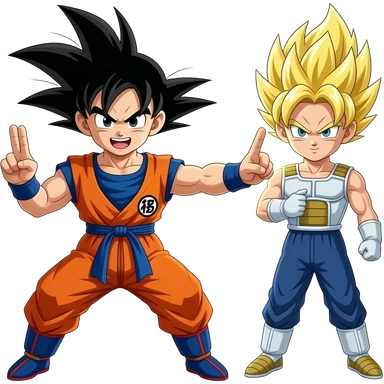 Dragon ball Goku with his two fingers and arms facing right to fusion with trunks emoji